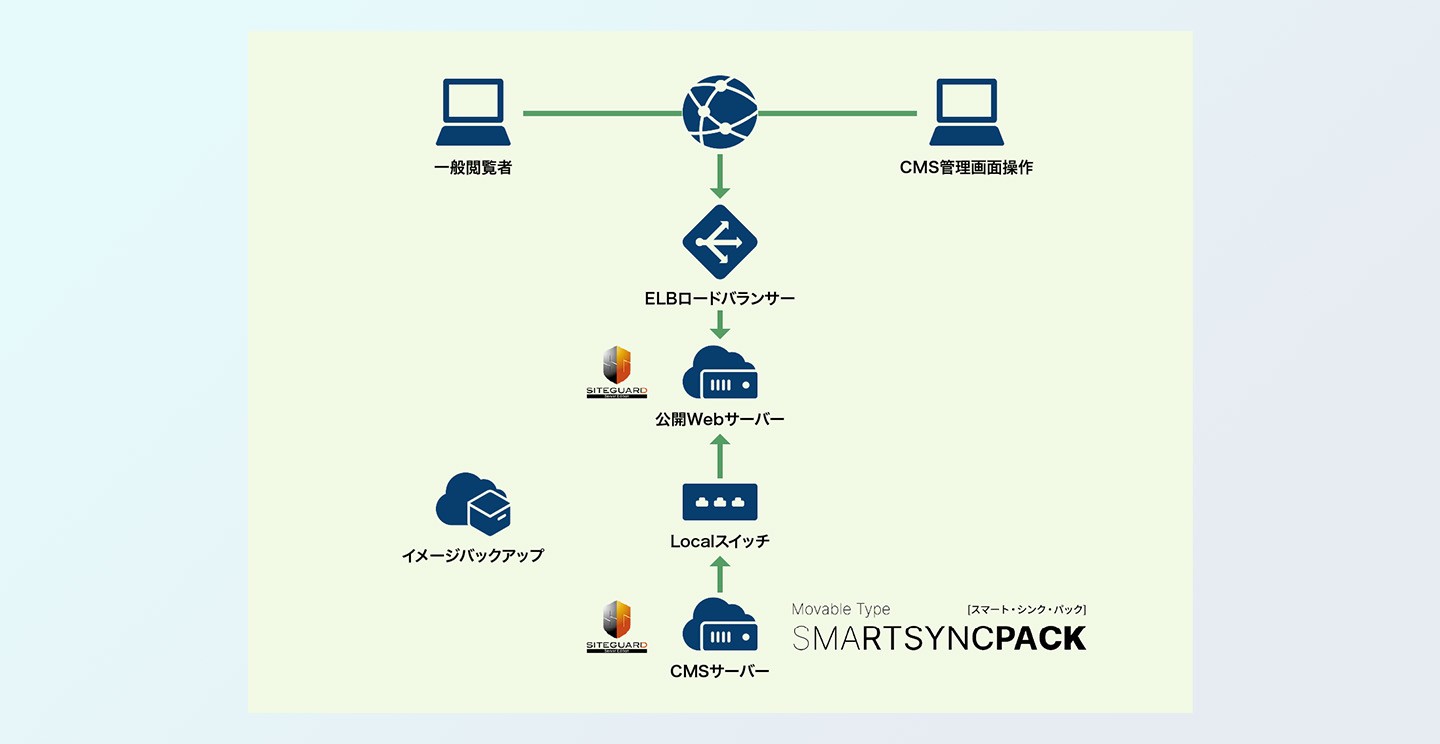 あわせて、静的配信を行うサーバー配信機能として「Movable Type SmartSync Pack」を導入。CMS環境と公開環境を分離し、安全性を確保しながら、これまでよりもスムーズかつ安定した公開運用を実現しています。